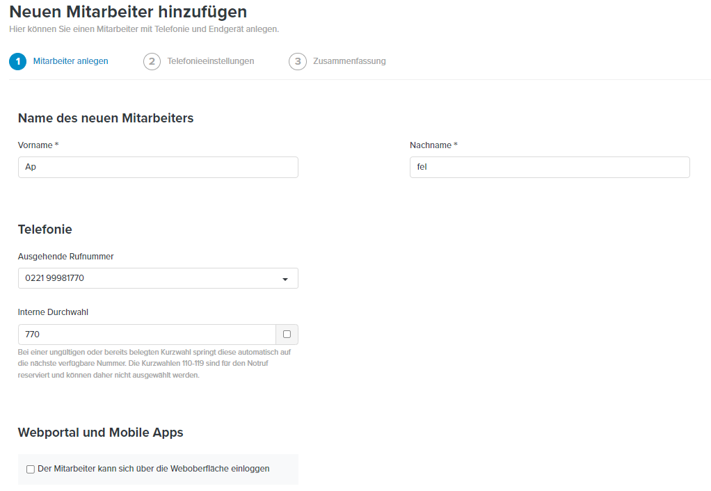 Damit Ihre Mitarbeiter telefonieren können, müssen diese zuerst im Kundenportal angelegt sein. Das erklären wir im Folgenden: