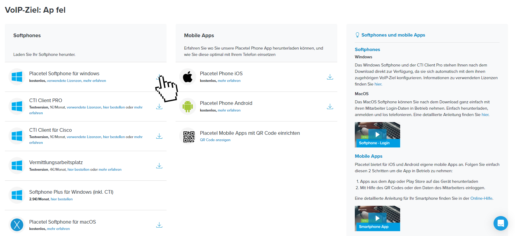 Um mehr über die einzelnen Softphone zu erfahren, nutzen unsere Online-Hilfe und die Artikel im Bereich Mobile Apps, Softphones & CTI