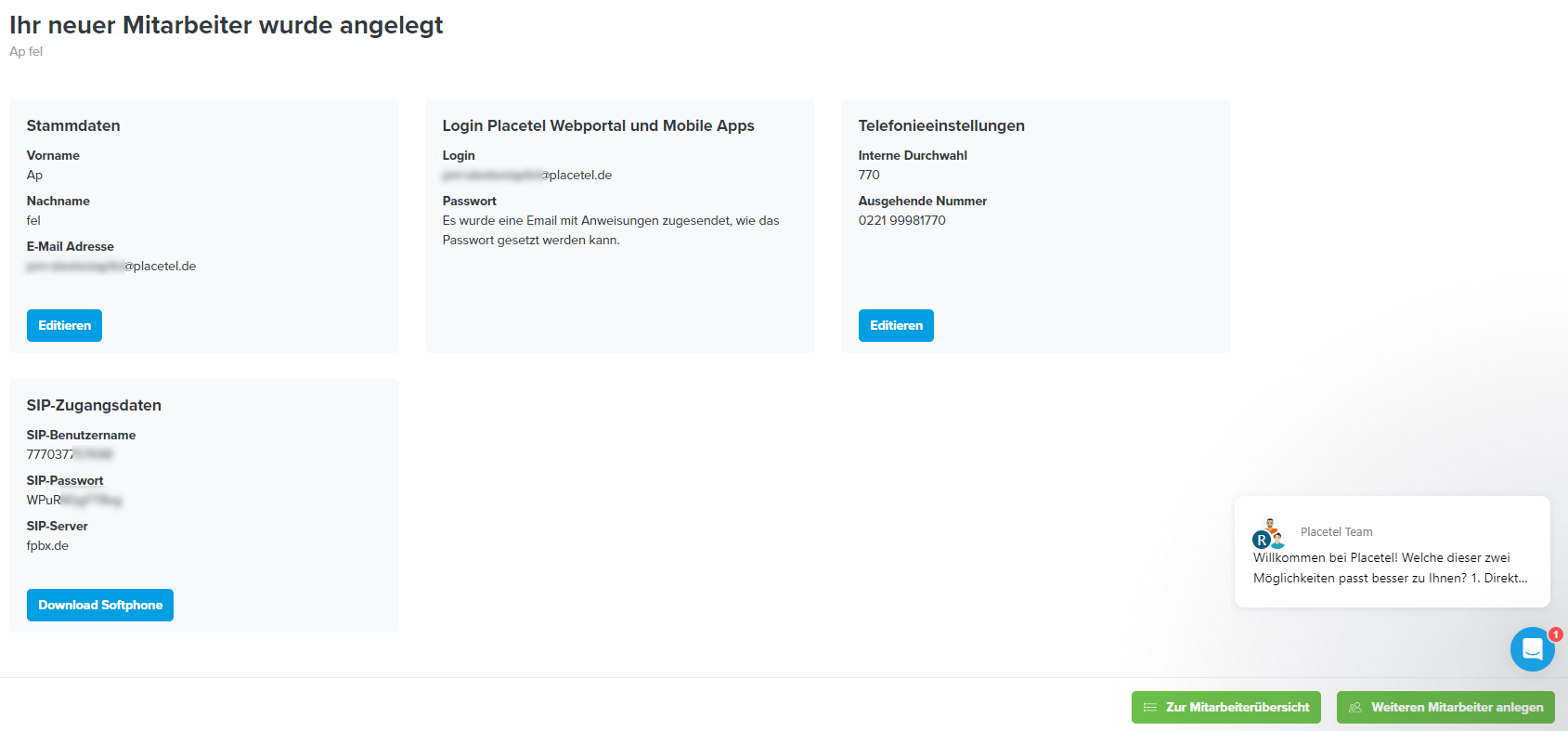 Starten Sie, indem Sie auf Mitarbeiter anlegen und Rufnummern zuweisen klicken.