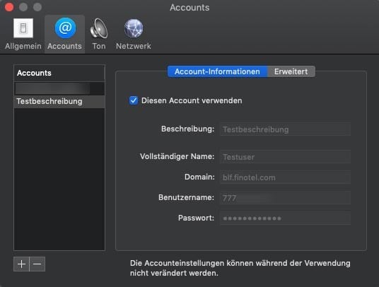 Benutzername und Passwort sind die jeweiligen SIP-Benutzerdaten, nicht Ihr Weblogin oder Ihre E-Mail Adresse!