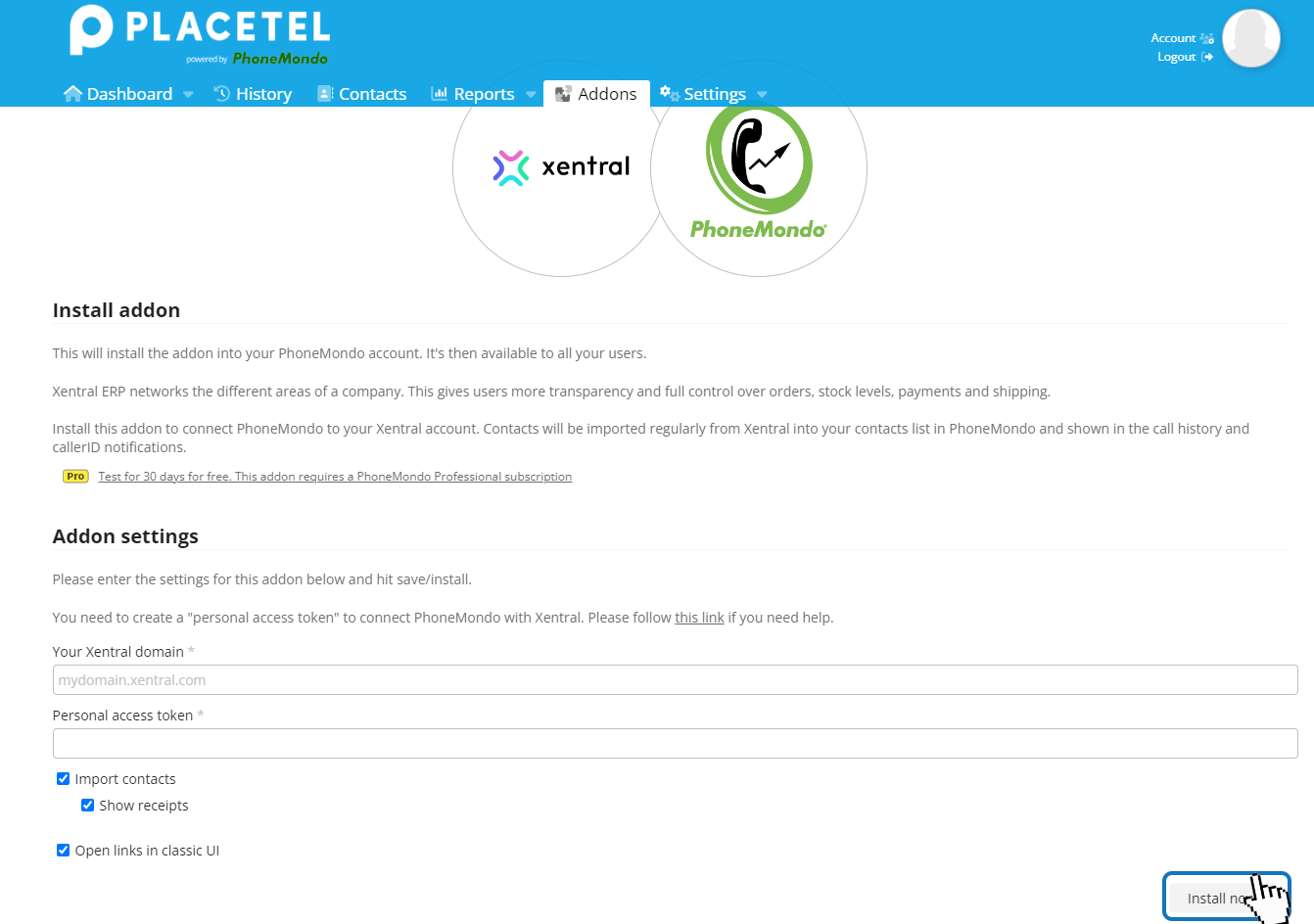 PhoneMondo: Xentral AddOn installieren - PhoneMondo: Verbinden Sie Ihren Xentral Account.