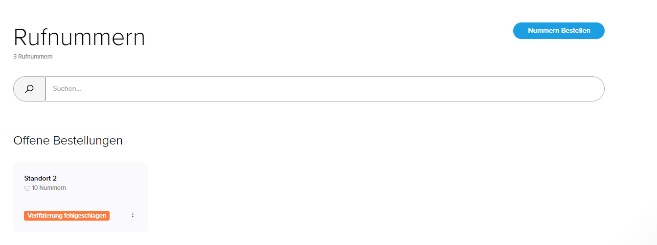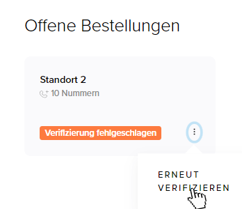 Sollte die Verifizierung für einen weiteren Vorwahlbereich fehlgeschlagen sein, so können Sie auch hier den Verifizierungsprozess nochmal neu starten.
