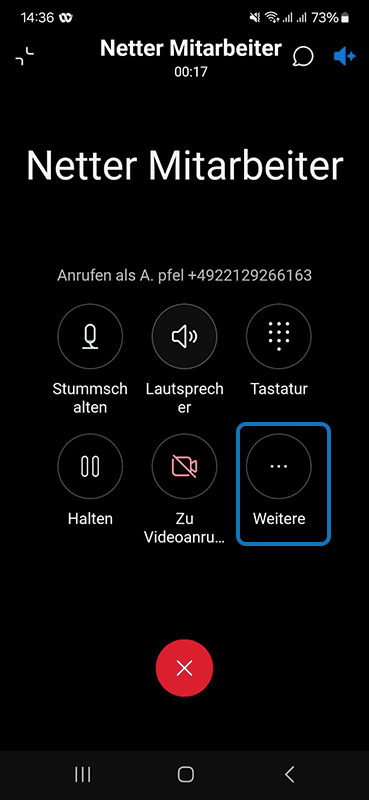Klicken Sie, innerhalb eines Anrufs per Webex, auf die 3 Punkte, um die weiteren Optionen aufzurufen. Hier finden Sie die Option Übergeben.