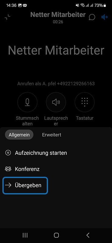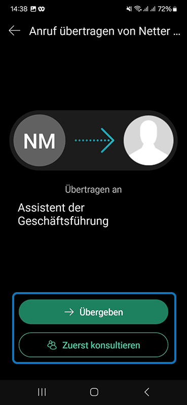 Anruf mit Rückfrage weiterleiten (warm transfer)