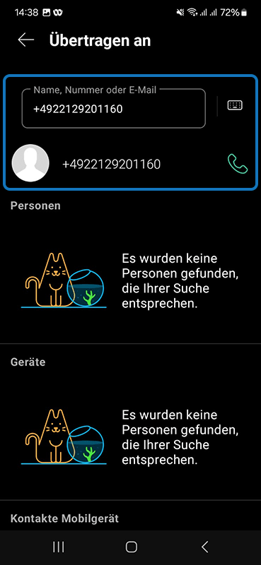 Der aktive Anruf wird direkt an die eingegebene Rufnummer durchgestellt.