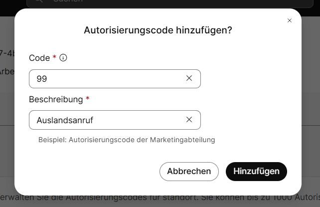 Um diese Codes zu nutzen, gehen Sie vor wie oben beschrieben, wählen Sie nur statt der Option Auslandsgespräch die Option Autorisierungscode anfordern.