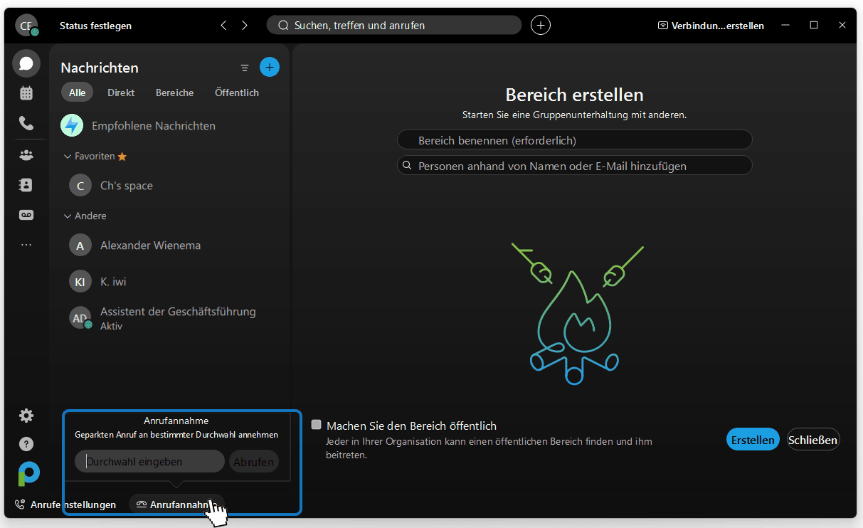 Zudem können auch andere Benutzer den geparkten Anruf entgegennehmen.