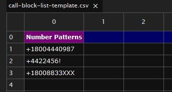 Geben Sie in der CSV-Datei in der ersten Spalte alle Rufnummern/ Rufnummern-Muster ein, die Sie sperren wollen.