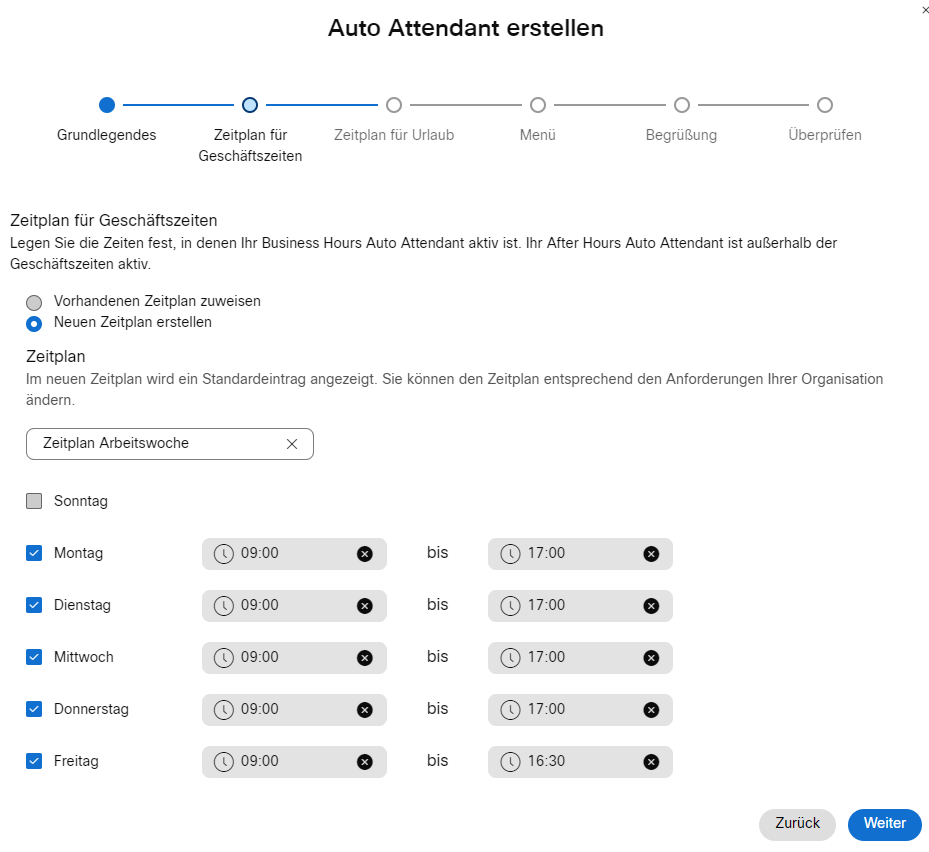 Auto Attendant: Zeitplan für Geschäftszeiten