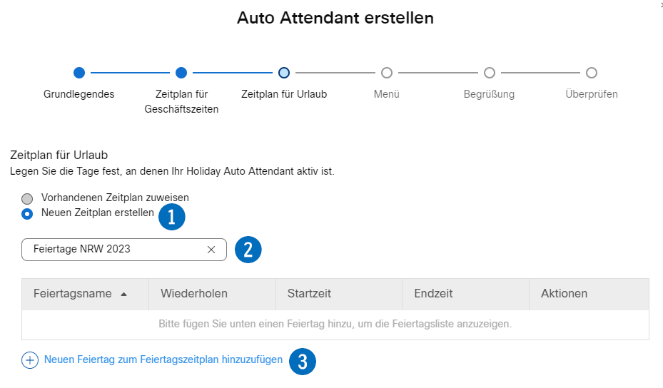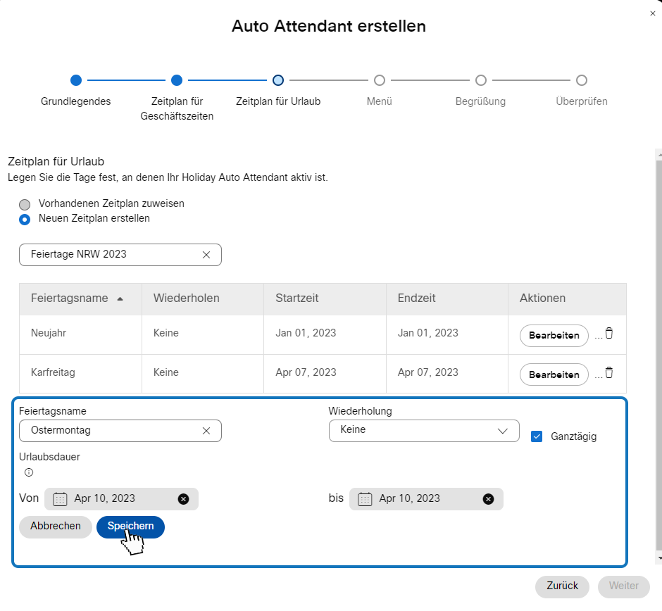 Auto Attendant: Hinzufügen eines Feiertags (2)
