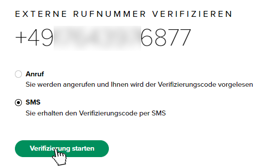Verifizierung der externen Rufnummer