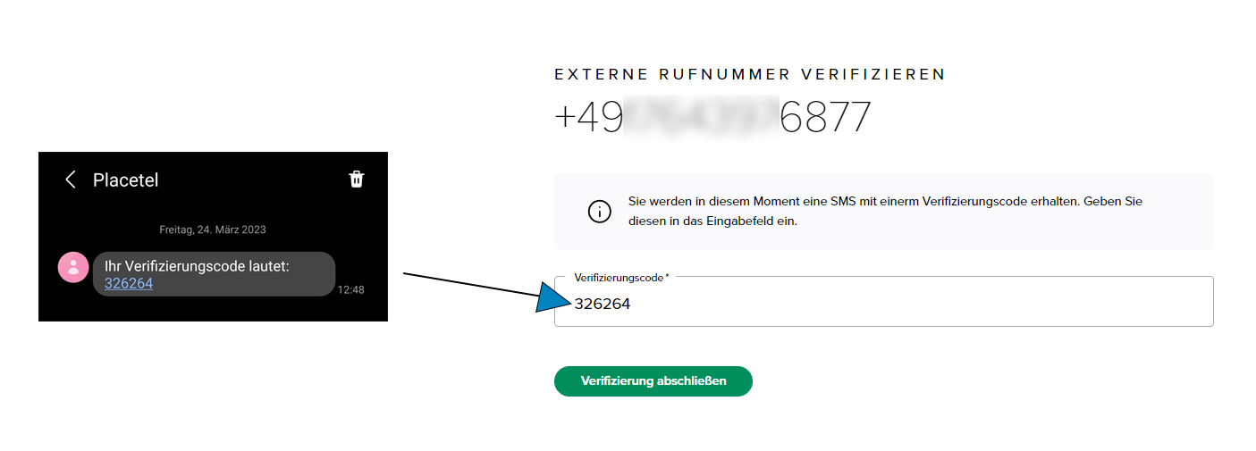 Die externe Rufnummer erscheint dann auch als Rufnummer im Placetel Order Portal.