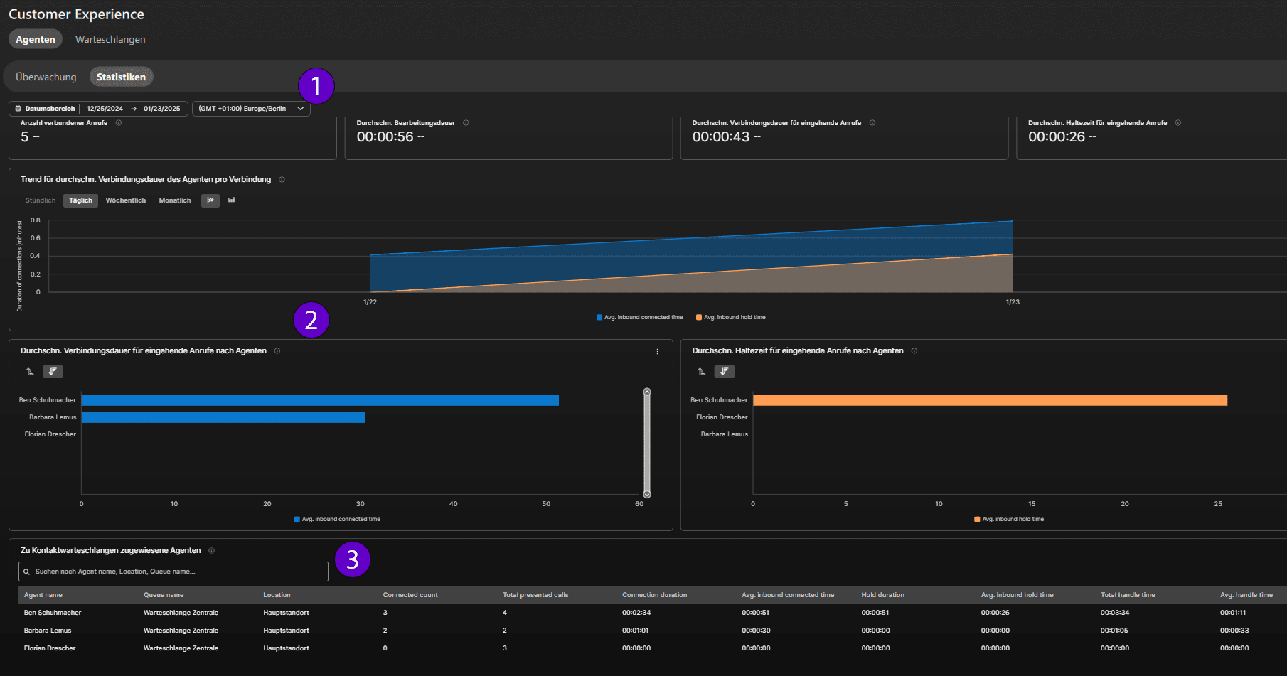- 3 Statistiken zu Agenten - Im unteren Bereich finden Sie sämtliche Statistiken bezogen auf einzelne Agenten.