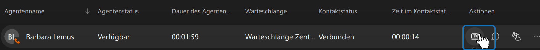 Als Supervisor eines Agenten können Sie sich auch in die laufenden Anrufe der Agenten schalten.