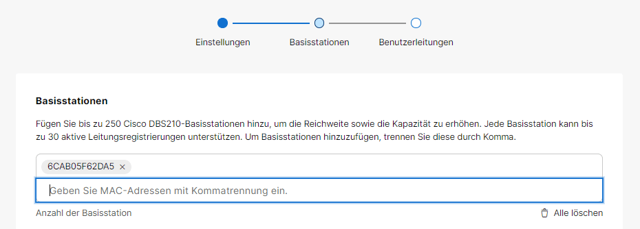 Geben Sie nun die MAC-Adresse(n) der Basistation(en) ein. Bestätigen Sie die Eingabe durch drücken auf die Enter-Taste.