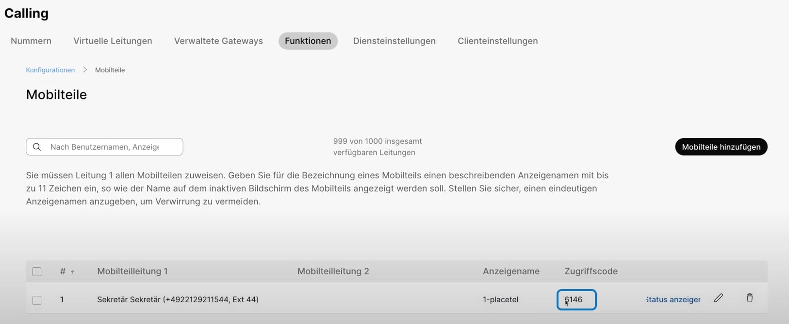 Rufen Sie dann die Mobilteile auf. Hier können Sie per Klick auf Mobilteile hinzufügen neue Mobilteile hinzufügen.