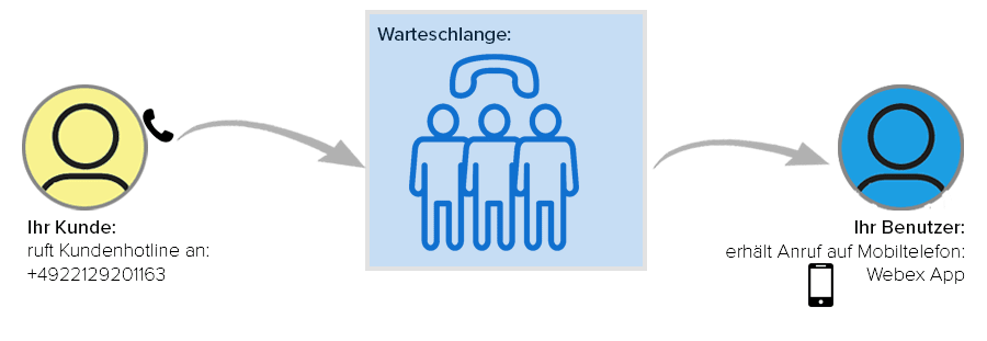 Die Konfigurationen wie zum Beispiel eine Warteschlange gelten auch in der Smartphone App. Das bedeutet, wenn Sie einen Benutzer einer Warteschlange zugeordnet haben und dieser automatisch auch über die Webex App erreichbar ist.
