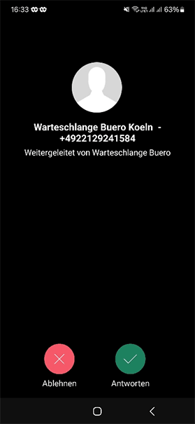 Hinweis: In der Smartphone App wird Ihnen unter Anrufe angezeigt, dass sich der Benutzer in einer Warteschlange befindet.