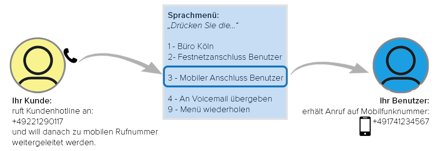 Szenario 3: Mobiltelefon eines Benutzers soll in Sprachmenü (IVR) eingebunden werden