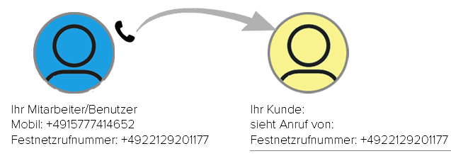 Wenn der Benutzer mit der mobilen Rufnummer +4915777414652 beispielsweise einen Kunden anruft, soll diesem die Festnetzrufnummer +4922129201177 angezeigt werden.
