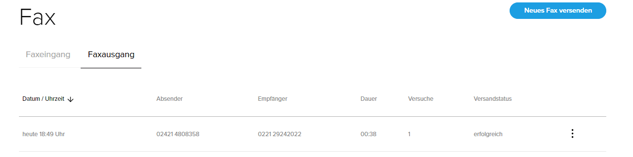 6.) Zudem können Sie im Placetel Order Portal auch den Status des Faxes einsehen.