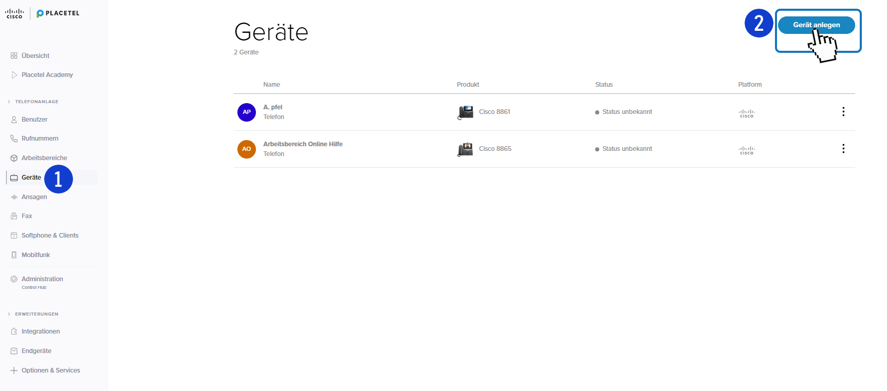 Wichtig: Nicht jedes Gerät kann über das Placetel Order Portal angelegt werden.