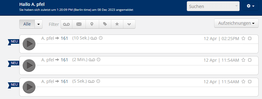 Aufzeichnungen finden Sie im Portal von Dubber Go.