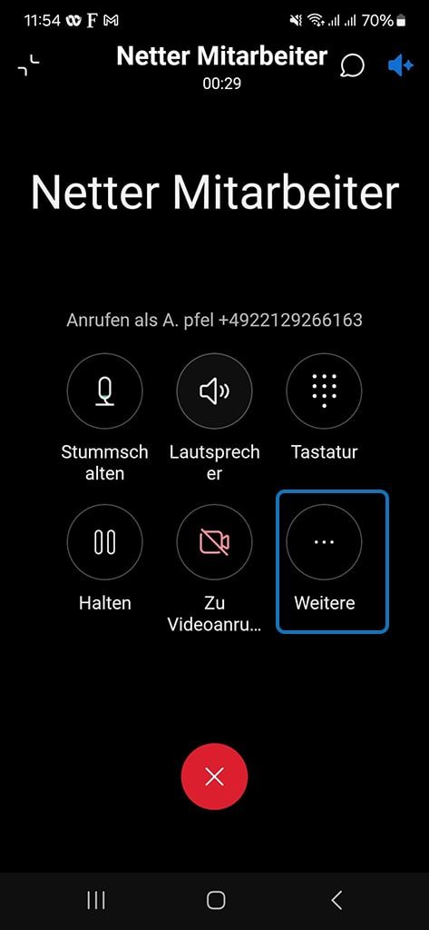 Dafür klicken Sie während eines laufenden Telefonats auf Weitere.