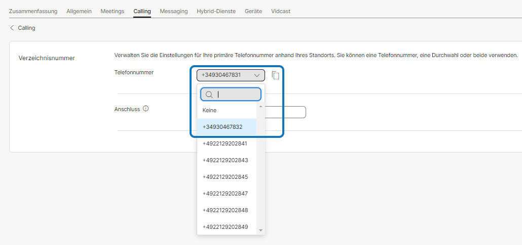 Internationale Rufnummern, werden (wie Ortsnetzrufnummern auch) über den Control Hub einem Mitarbeiter zugewiesen.