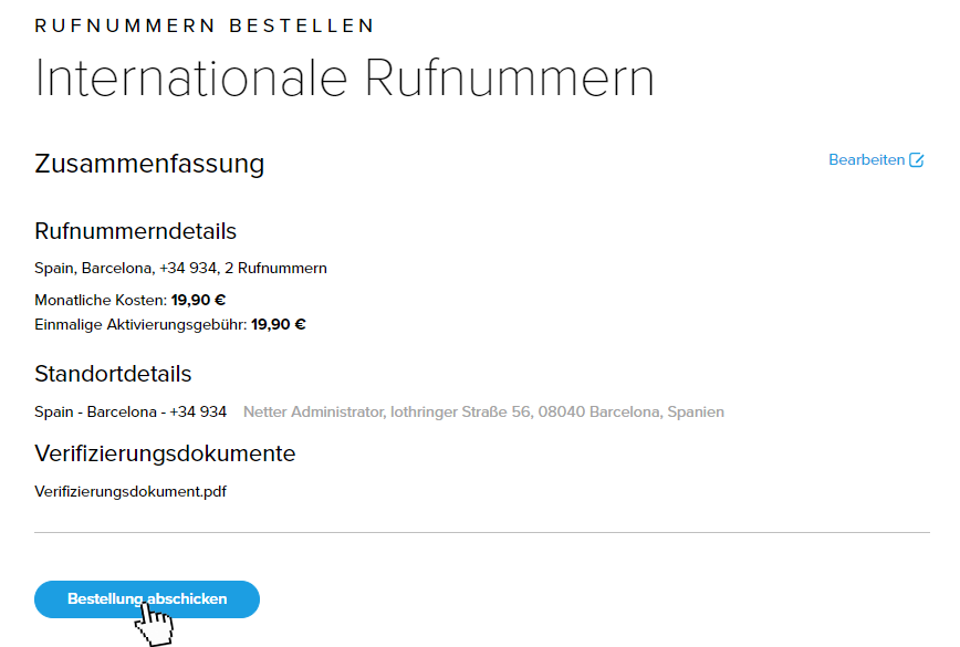 Sie erhalten im nächsten Schritt noch eine Zusammenfassung über Ihren Bestellung und können diese dann abschicken.
