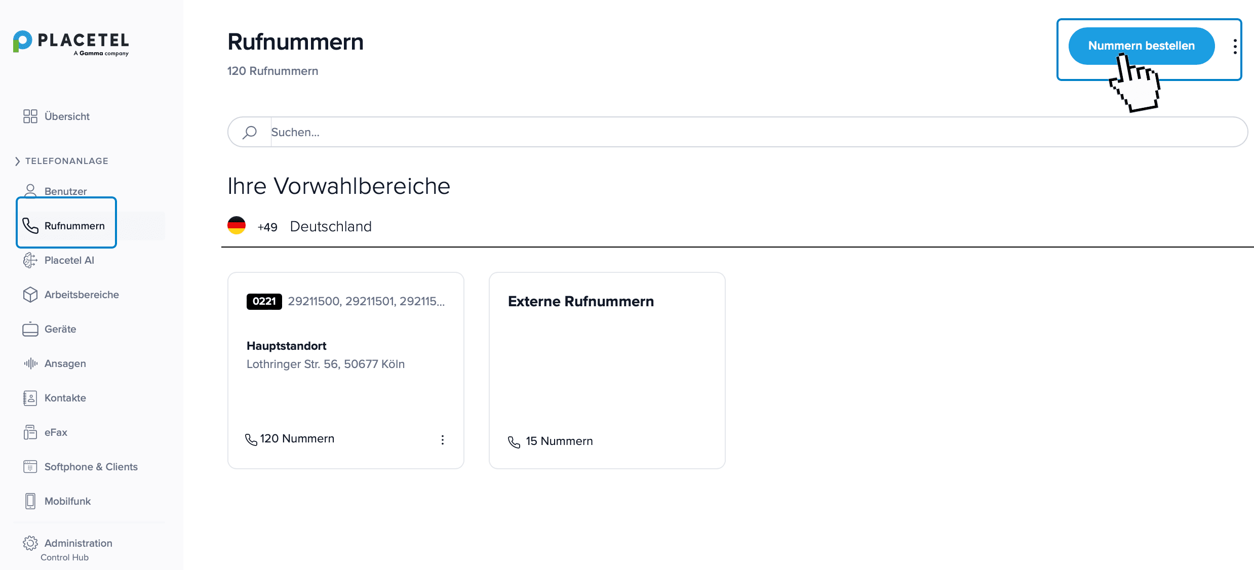 1.) Klicken Sie in der linken Navigationsleiste auf Rufnummern und dann auf Nummern bestellen.
