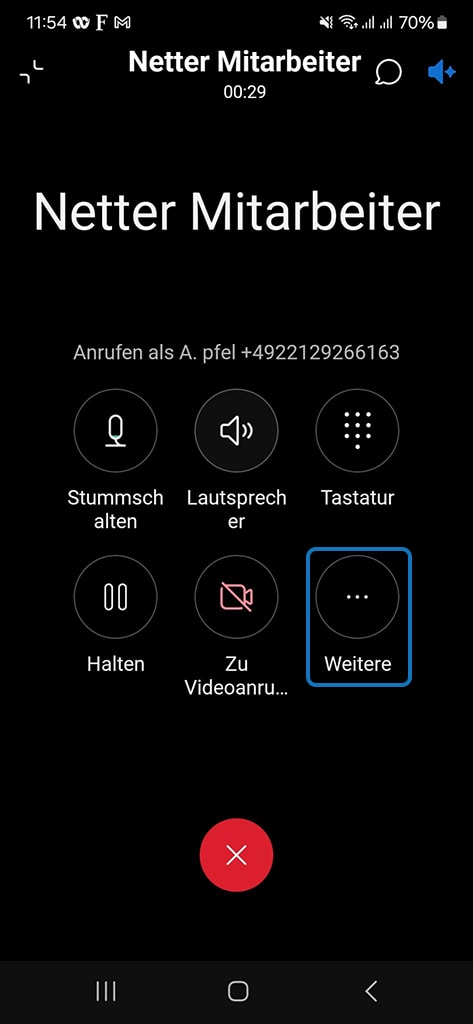 Nachdem Sie ausgewählt haben, auf welcher Rufnummer Sie anrufen wollen, wird die Person, die Sie der Konferenz hinzufügen sollen angerufen.