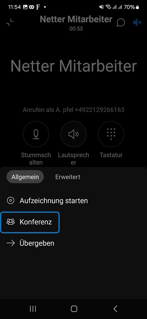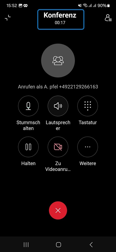 Konferenzen können immer dann erstellt werden, wenn Sie sich bereits in einem aktiven Telefonat befinden (siehe unten).