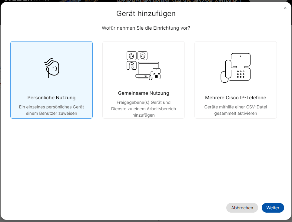 4.) Bei Gerät hinzufügen wählen Sie Cisco Telefon, ATA oder Gerät von Drittanbietern aus.