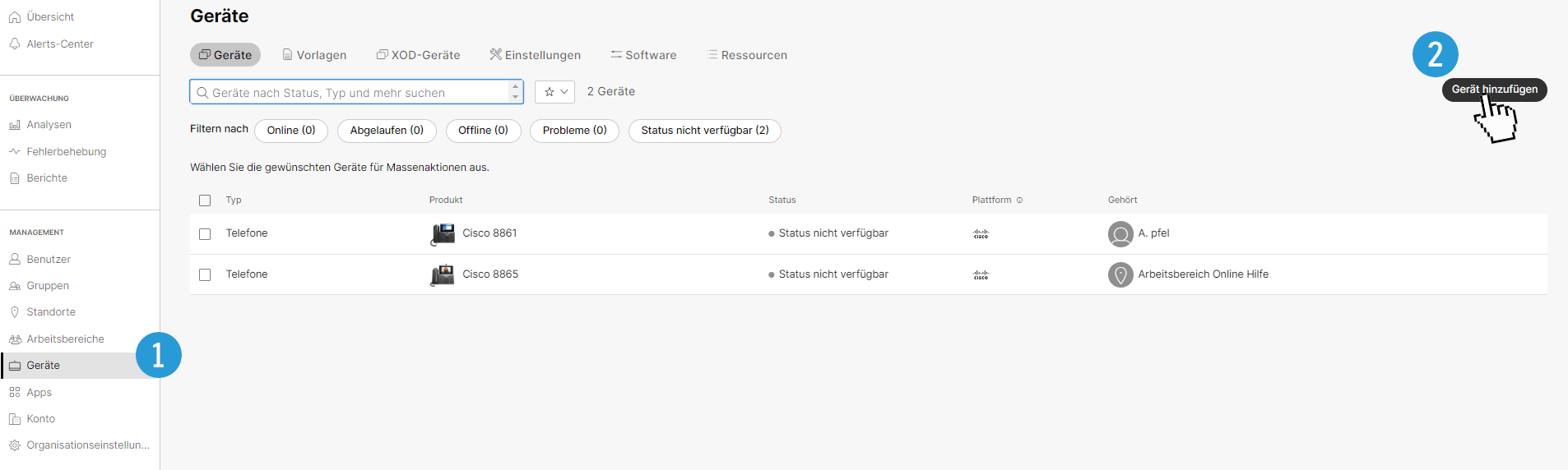 Management: Geräte → Klicke auf Gerät hinzufügen.