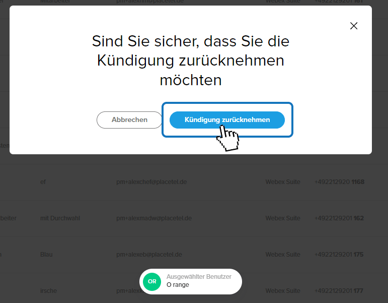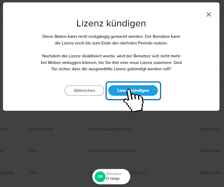 Wie Sie eine aktive Webex für Placetel Lizenz kündigen können haben wir für Sie in diesem Artikel beschrieben.