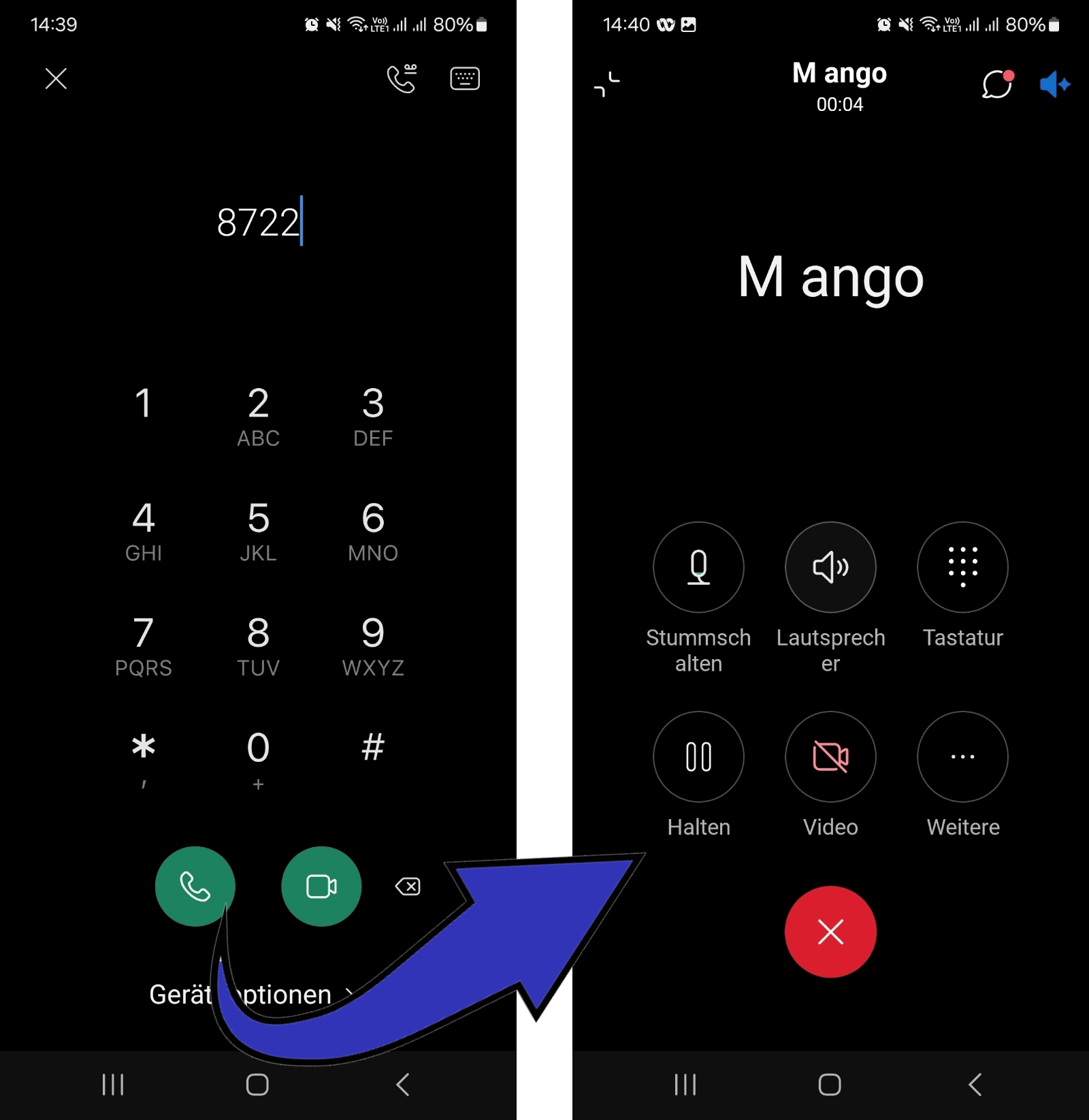 Auch hier kann über den Bereich Anrufe das Tastenwahlfeld aufgerufen werden und damit ein Benutzer angerufen werden.