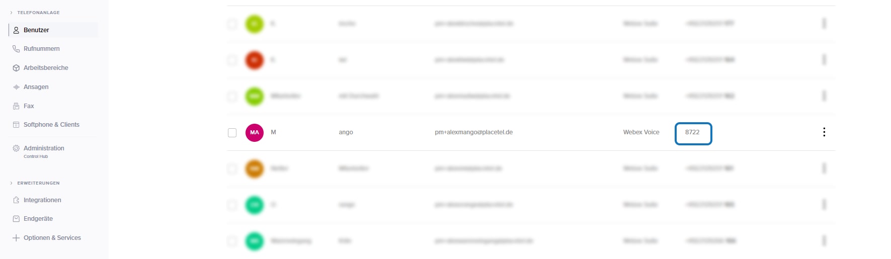 In diesem Artikel beschreiben wir Ihnen, wie Sie Benutzer zu Webex für Placetel hinzufügen bzw. einladen können. Benutzer ist hier der Sammelbegriff für alle Personen, die Sie in Ihrer Organisation haben.