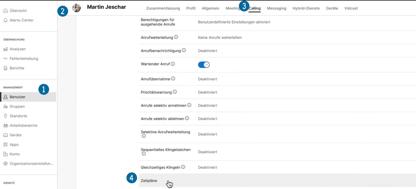 Management: Benutzer → Klick auf entsprechenden Benutzer → Calling