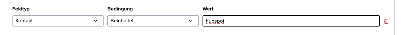 - Wählen wir Konatkt als Feltyp und Ist als Bedingung. Danach tragen wir unsere Werte im entsprechenden Feldern ein, und anschließend Schritt 10.