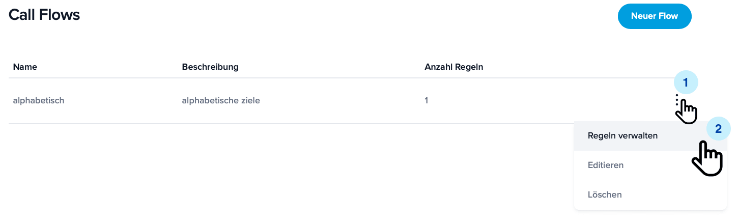 klicken Sie auf die 3 Punkte des jeweiligen Routing-Flows und dann auf Regeln verwalten.