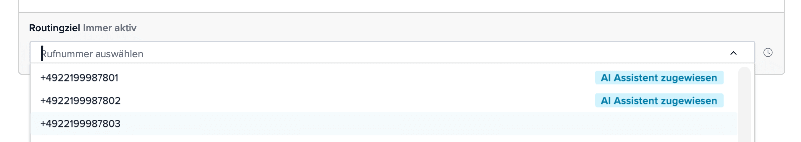 - Routingziel wählen bei dem Sie eine Rufnummer zuweisen, hier können sie gerne auch einen AI-Agent verbinden statt einen regulären User.