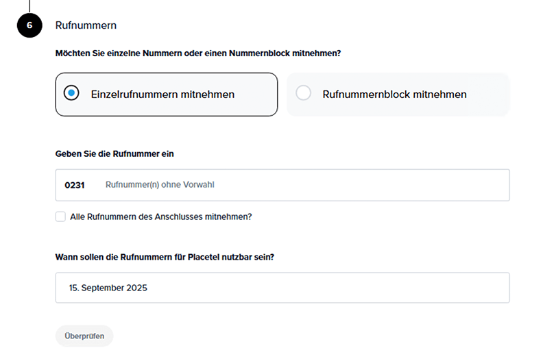 - Klicken Sie auf „Bestehende Rufnummern mitnehmen“.