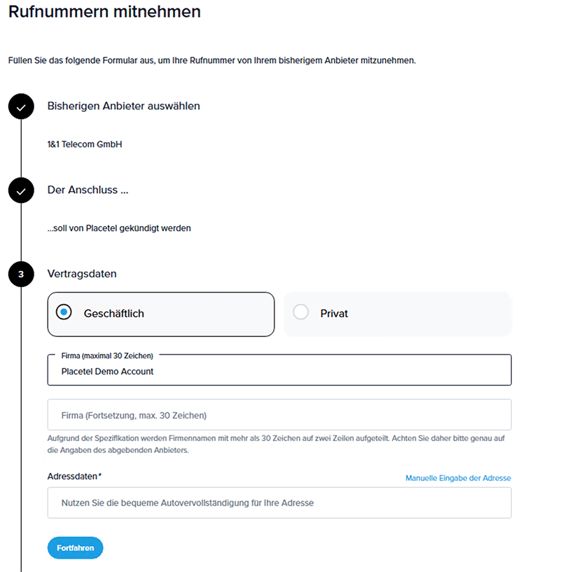 Die geschieht im Placetel Order Portal. Den Prozess haben wir unten für Sie beschrieben.