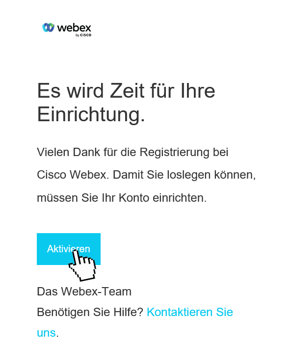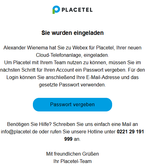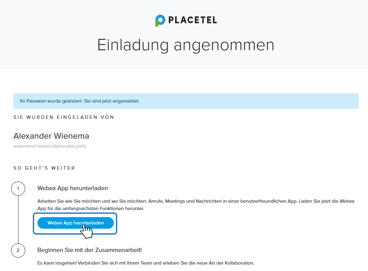Ihre Mitarbeiter erstellen dann für sich ein Passwort - Danach sollte sich Ihr Benutzer Webex herunterladen.