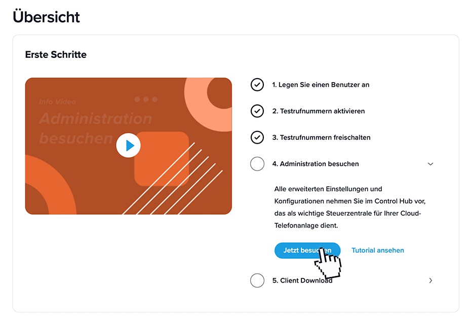Sie können auch jederzeit den Control Hub testen. Der Control Hub ist die zentrale Oberfläche um Ihr Telefonsystem zu konfigurieren.