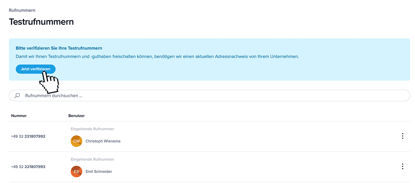 Test-Rufnummern sind nun im Portal freigeschaltet