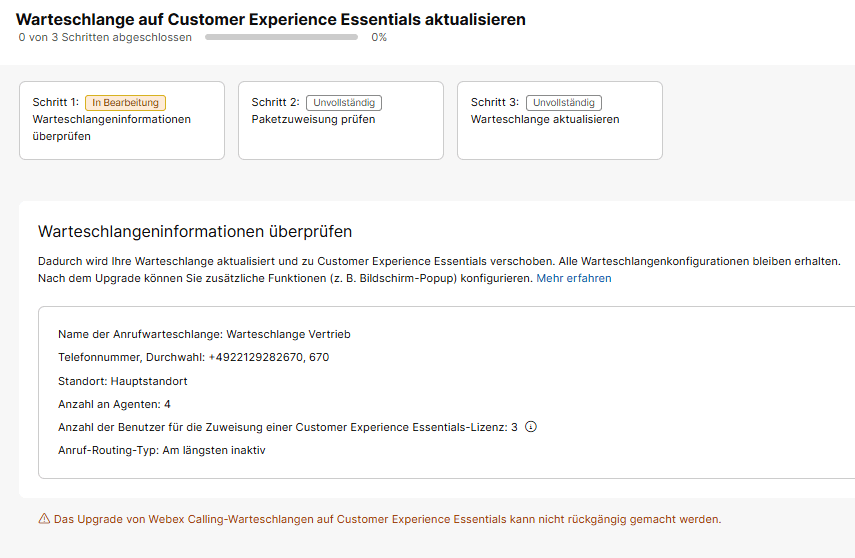 Warteschlange auf Webex Customer Assist upgraden