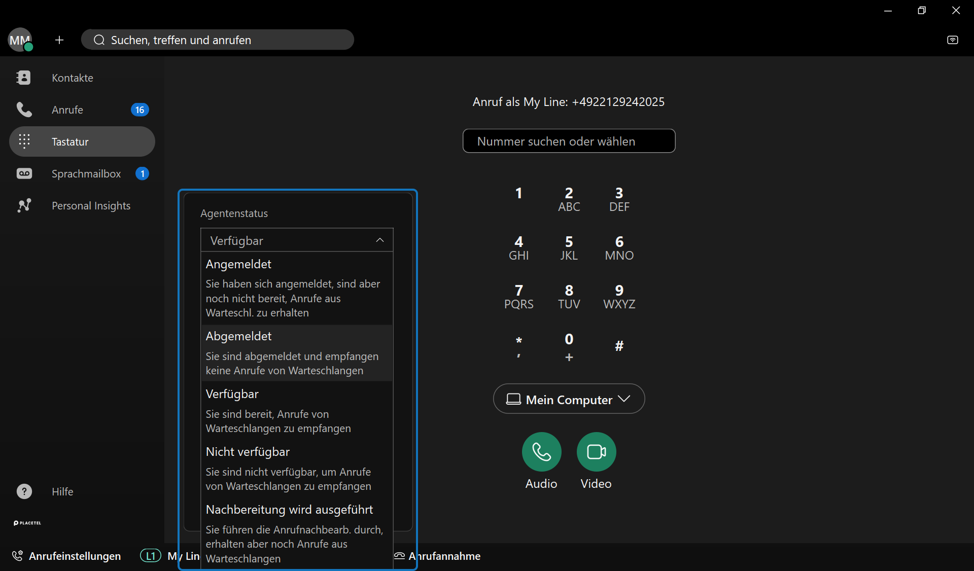 Hinweis: Dieser Status gilt dann für alle Warteschlangen, mit denen der Agent verbunden ist.