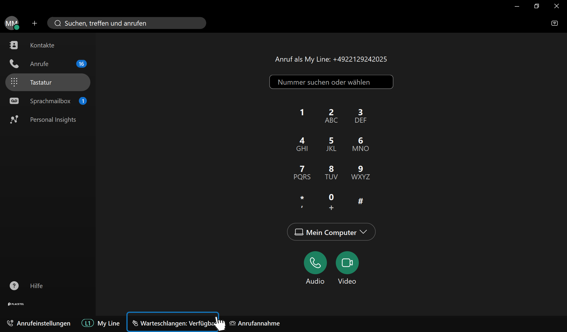Dienste: Calling → Funktionen → Anrufwarteschlange